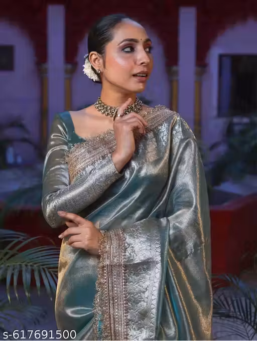 M.Premium Banarasi Premium Tissue Silk Saree with Designer Lace Green
